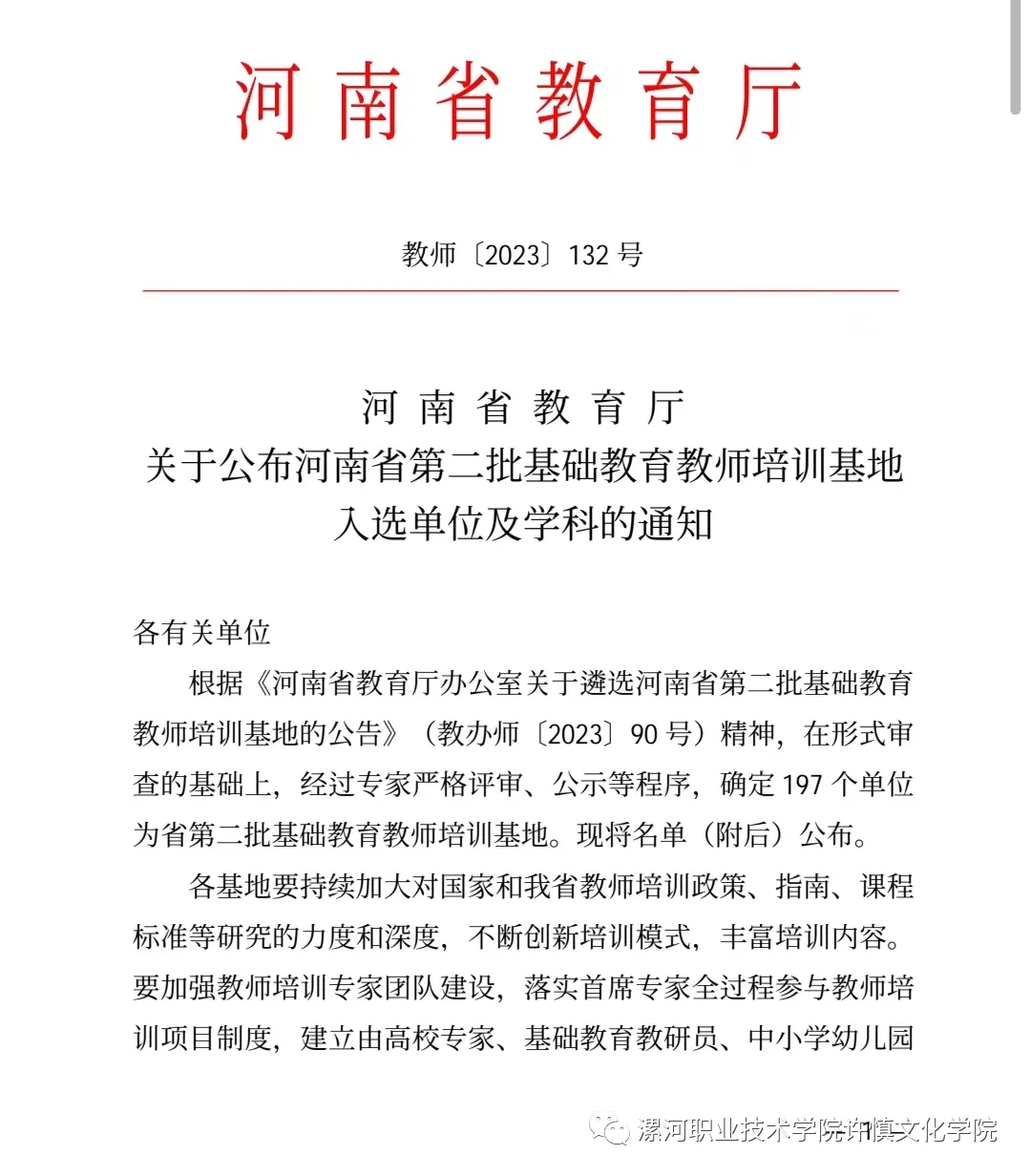 近日,河南省教育厅印发《关于公布河南省第二批基础教育教师培训基地入选单位及学科的通知》(教师[2023] 132号),OK138太阳集团许慎文化学院团队申报的学科“书法(书法教育)书法(甲骨文)”成功入选。