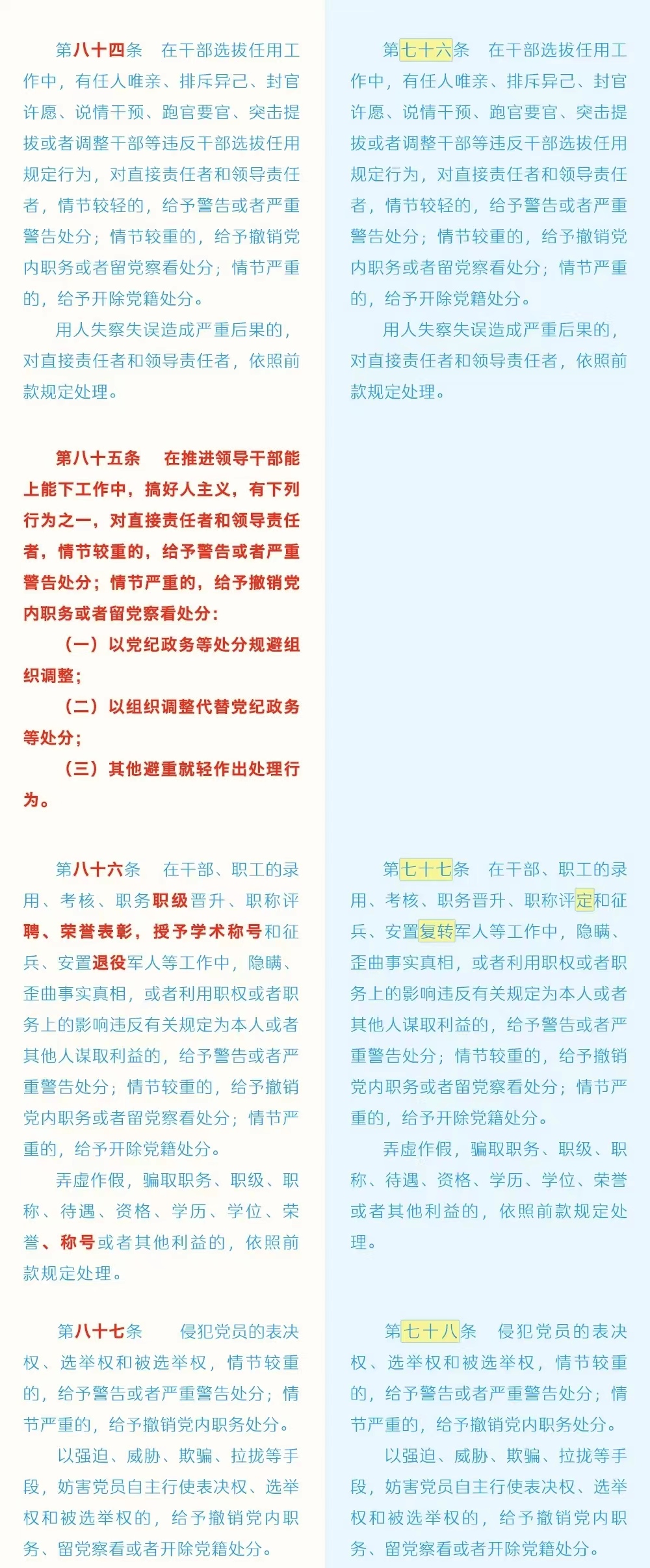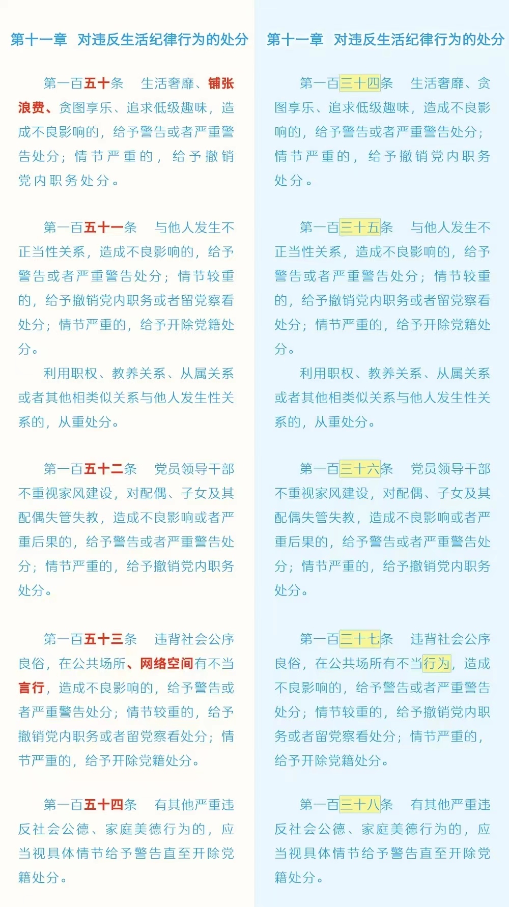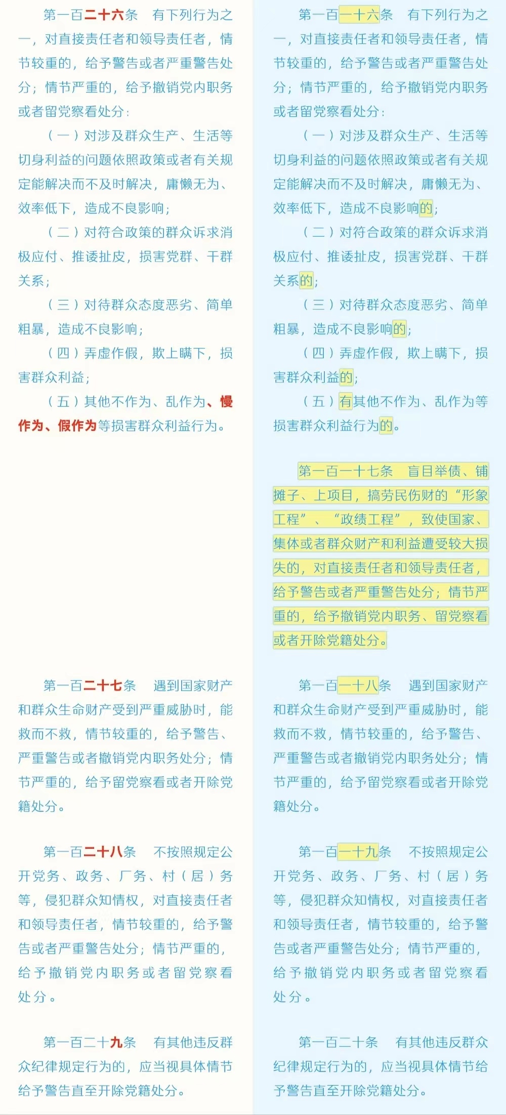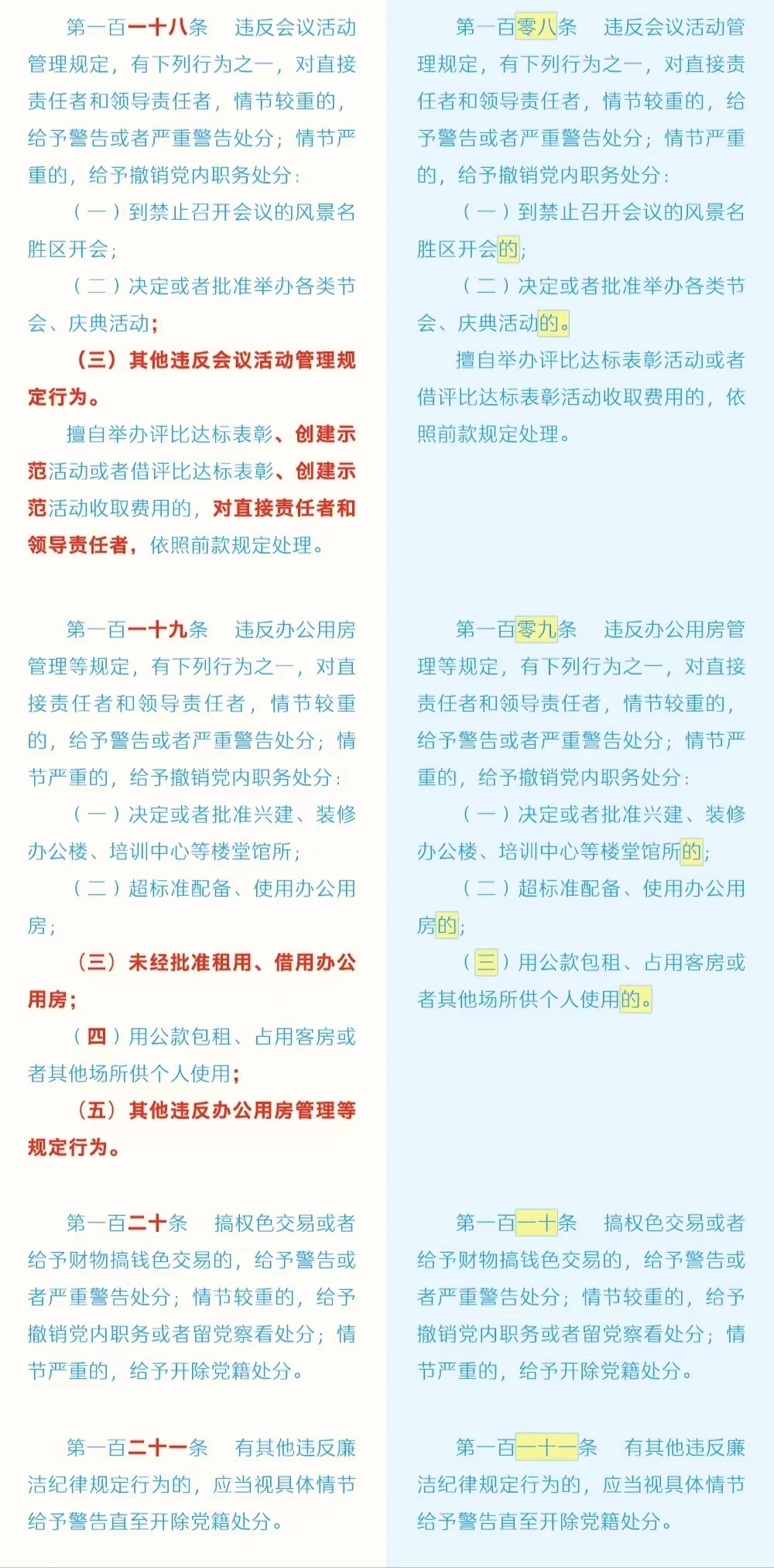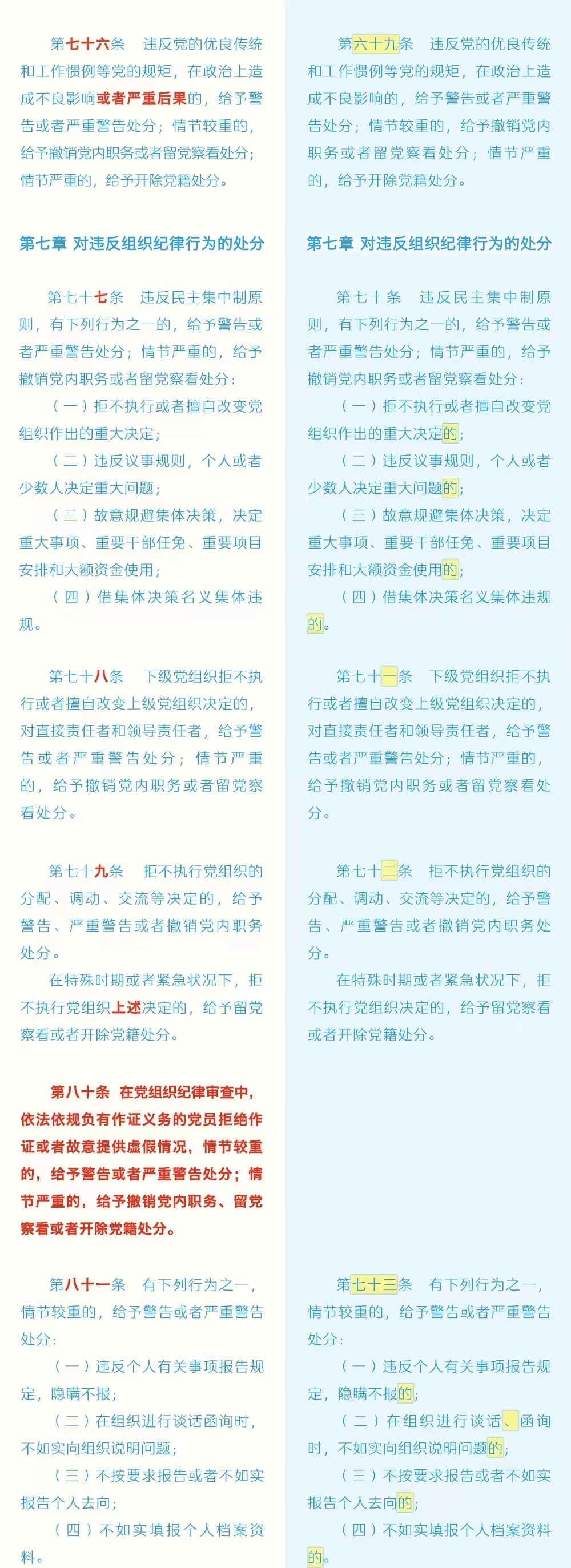 《中国共产党纪律处分条例》修订条文对照表
