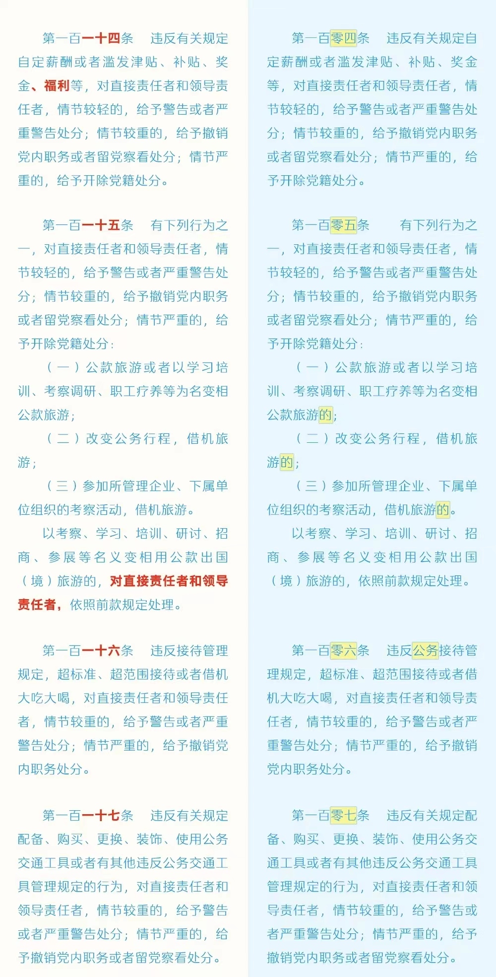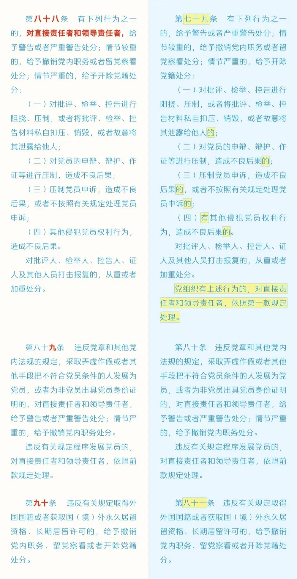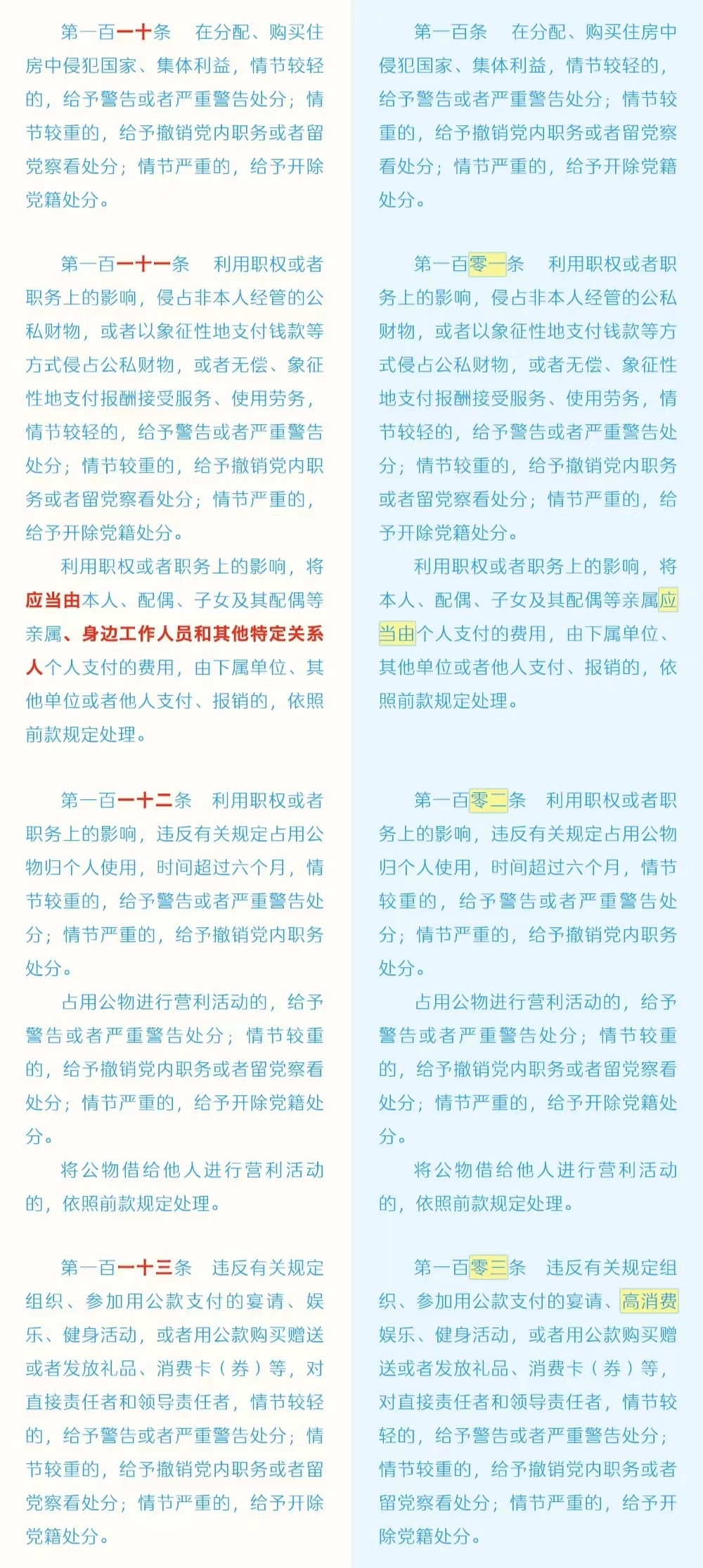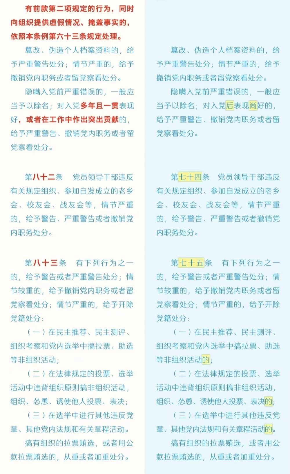 《中国共产党纪律处分条例》修订条文对照表