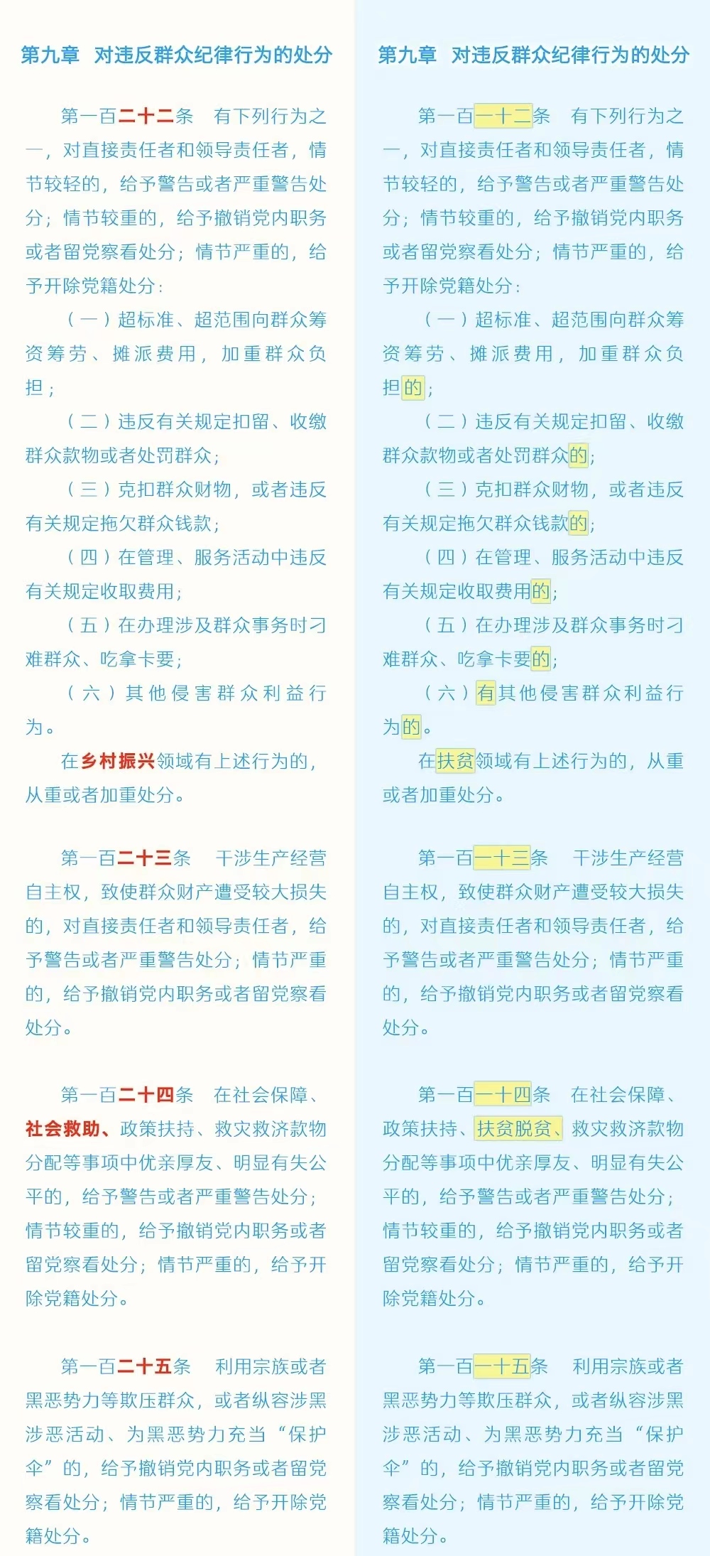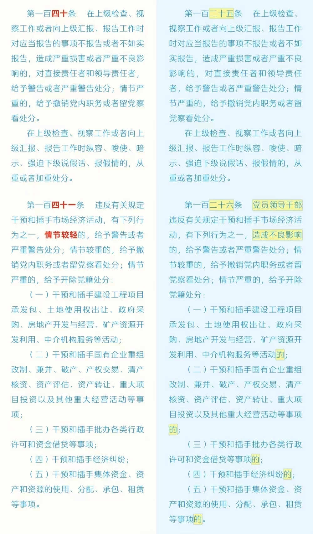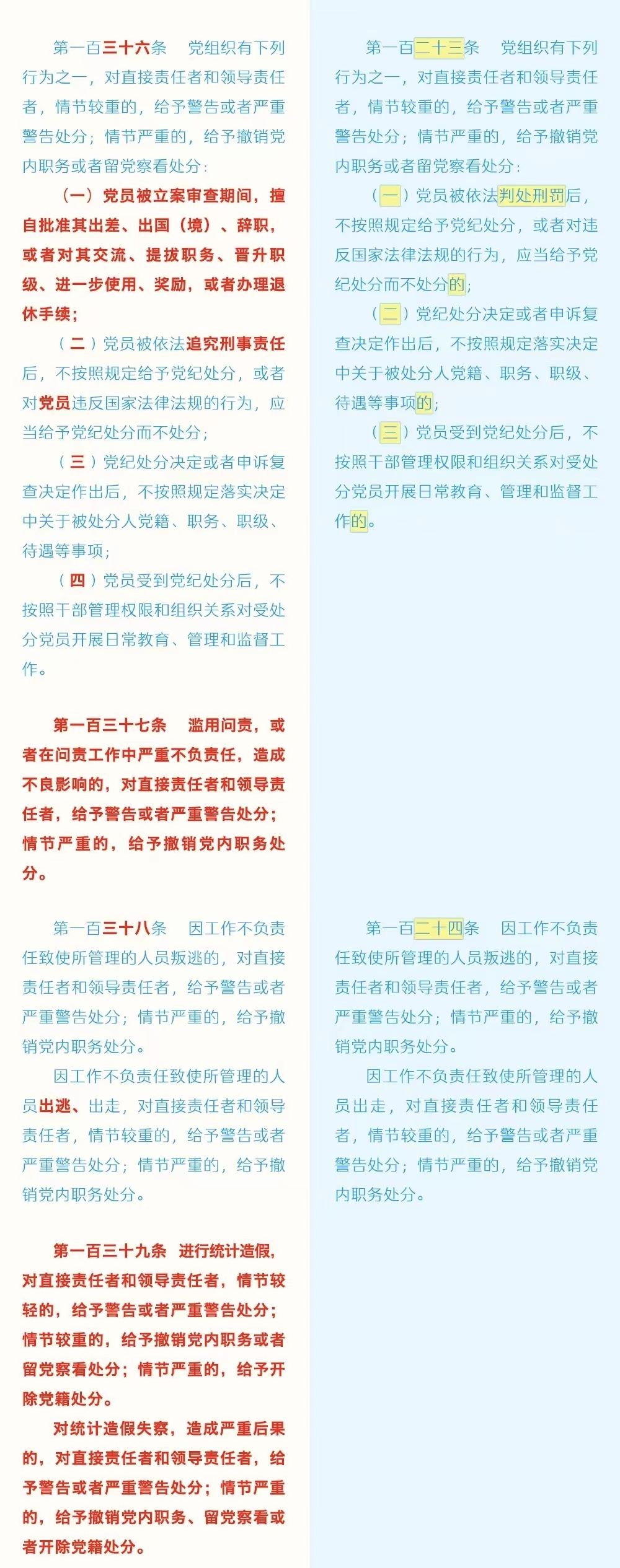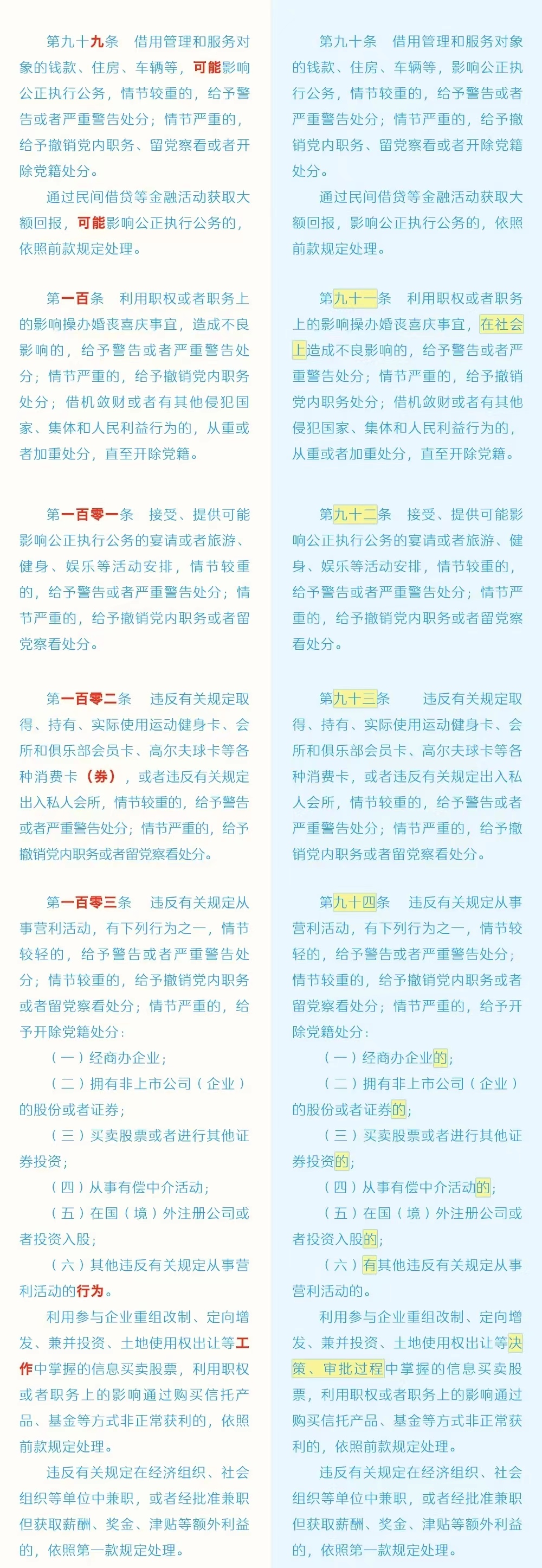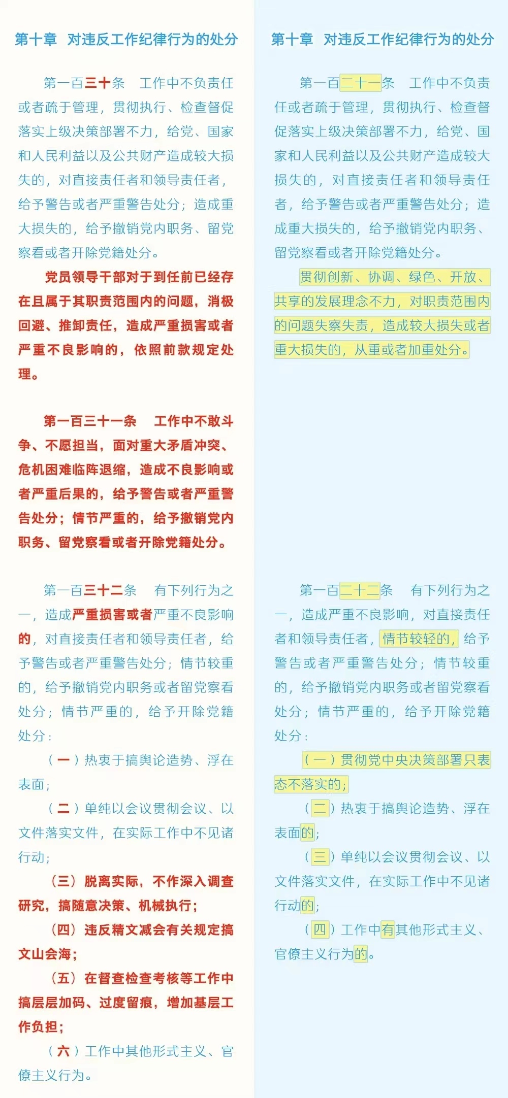 《中国共产党纪律处分条例》修订条文对照表