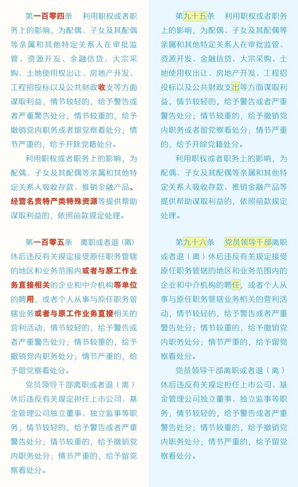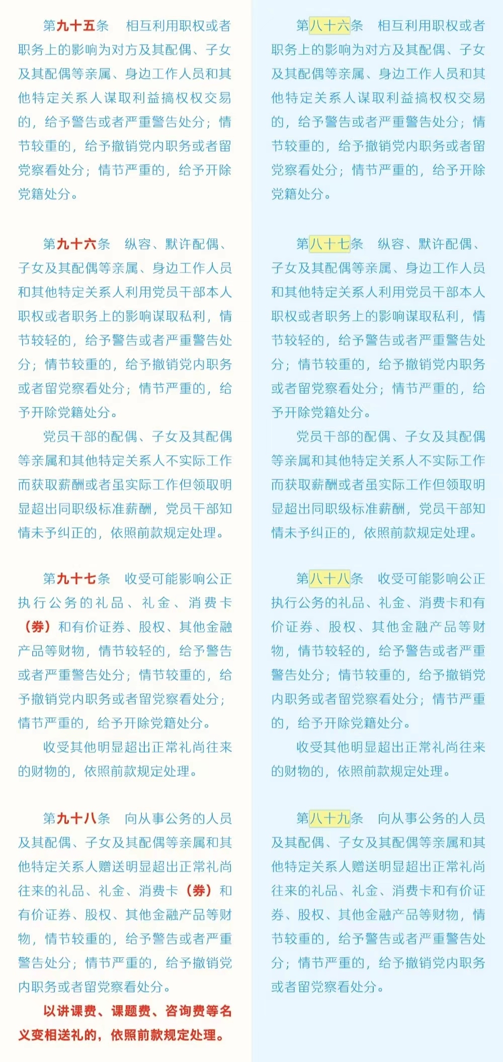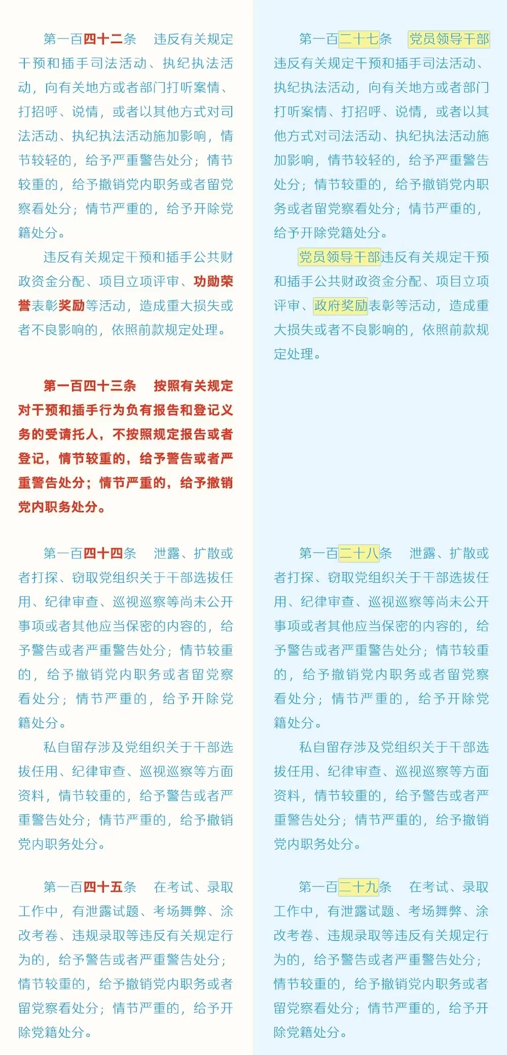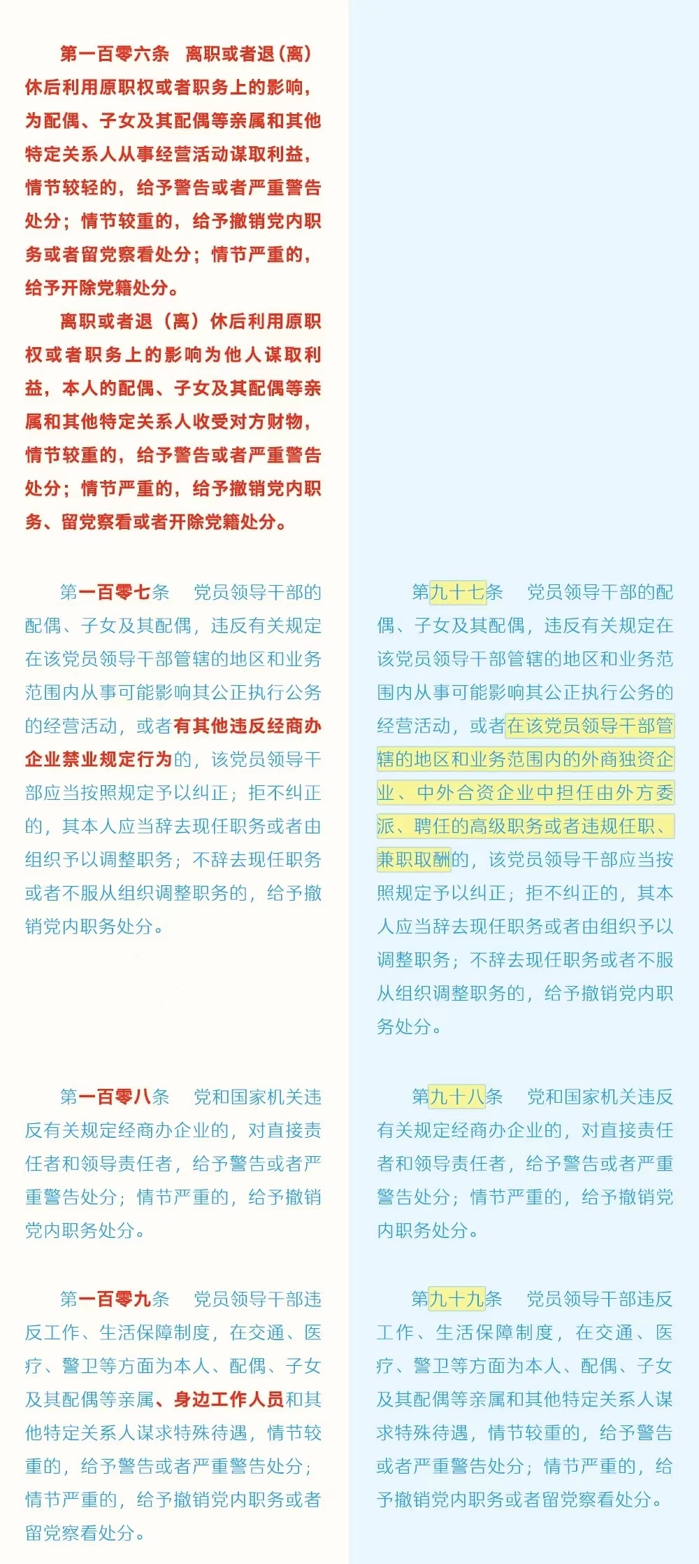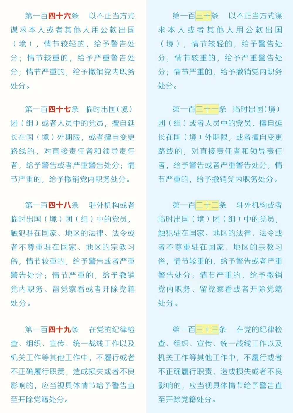 《中国共产党纪律处分条例》修订条文对照表