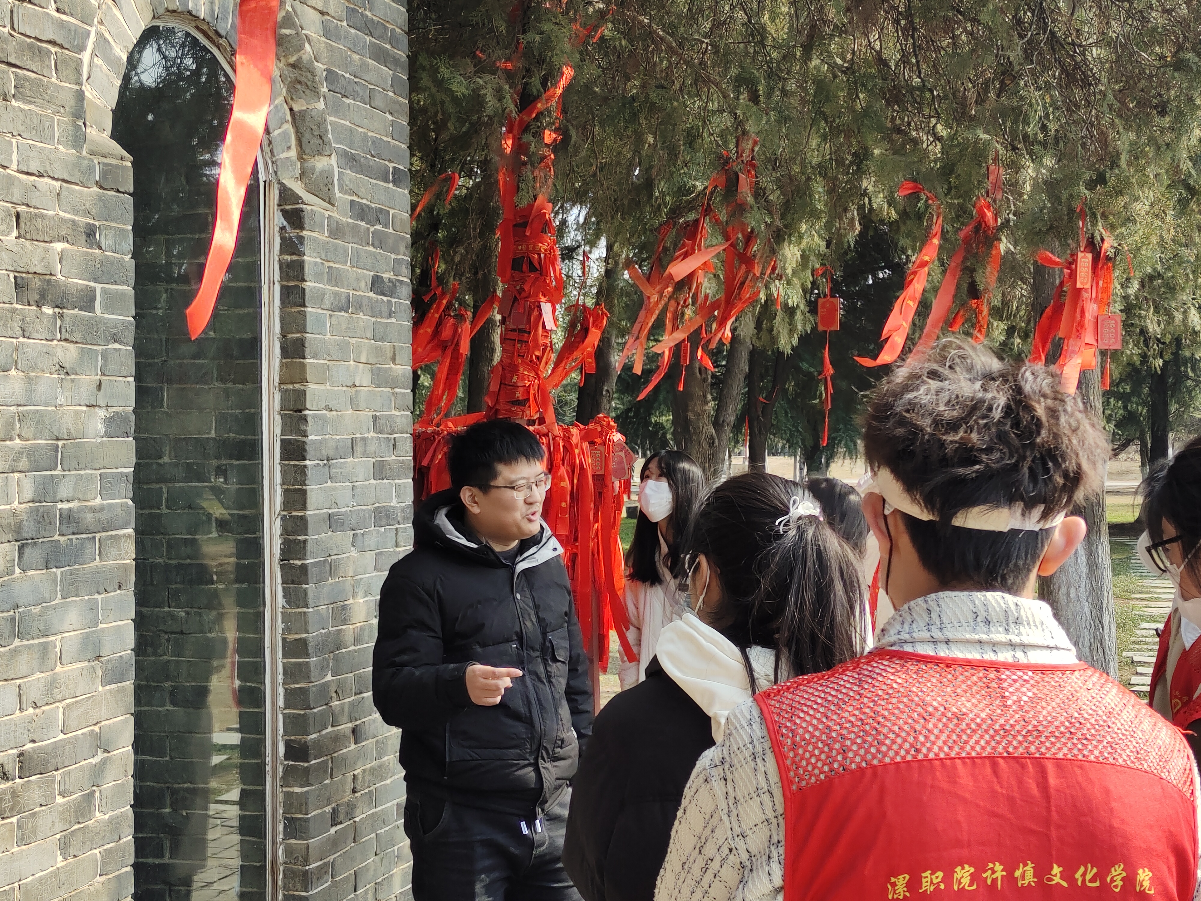 2023年2月26日,许慎文化学院团总支组织20名师范类专业学生志愿者由语文教研室指导老师宋琦、孙健男带队到许慎文化园对学生志愿者进行文化园志愿者讲解员培训。