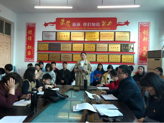 2019年4月1日下午五点,许慎文化学院学生党支部在二楼党员活动室召开学生党支部大会。许慎文化学院学生党支部书记吕红梅、学院团总支书记、学生党支部组织委员袁海伟、学生党支部宣传委员罗嘉文出席了本次大会,参加本次大会的还有支部全体辅导员、学生党员、本次拟发展对象以及入党积极分子代表。会议由团总支书记袁海伟同志主持。