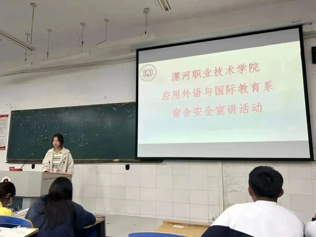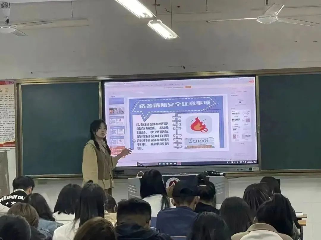 为进一步加强新生的宿舍安全意识,提高自我管理能力,在应用外语与国际教育系党总支的指导下,系宿管委学生干部于10月10日晚7:30在三号楼晚自习教室分别给2023级500名新生开展“新生宿舍安全知识普及”宣讲活动。