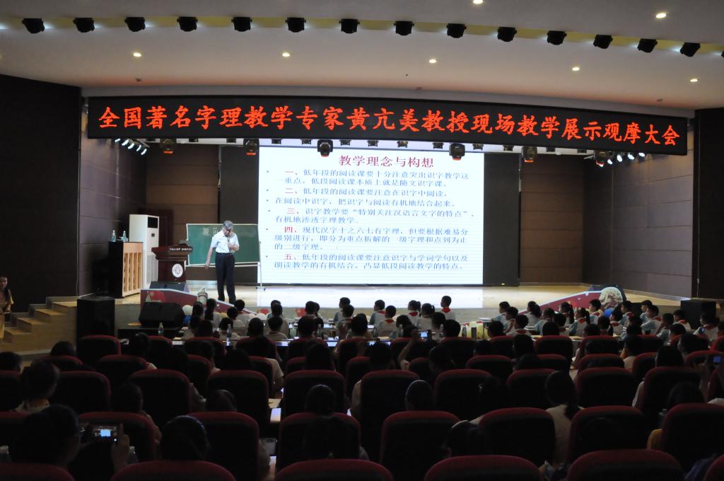 6月11日上午,我校邀请全国著名字理教学专家、广西师范学院研究员、硕士研究生导师、我校兼职教授黄亢美先生在北大附属实验学校大礼堂举行现场教学展示观摩大会。漯河北大附属实验学校小学部主任张景、教科处主任曹丽萍、OK138太阳集团许慎文化学院副院长孟令超、党总支副书记吕红梅等学院领导班子成员、语文教育教研室全体教师、2017级语文教育、小学教育和2018级语文教育专业全体学生及北大附属实验学校小学部的部分教师和学生代表共400多人参加了此次现场教学观摩大会。此次观摩大会由许慎文化学院副院长孟令超主持。