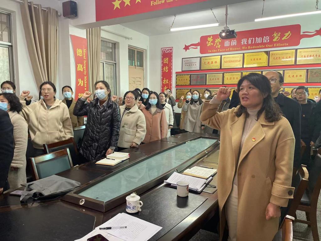 学院党总支副书记吕红梅带领全体教师重温教师誓词,嘹亮的誓言、铿锵有力的宣誓声代表着全体教师立志献身教育的荣誉感、自豪感和责任感,是全体教师凝心聚力为学院高质量发展携手奋进最坚实的动力。
