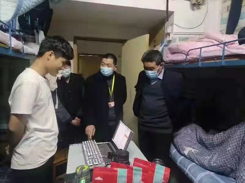 一句句嘘寒问暖、一声声苦心劝说、一个个暖心电话,这些都记录着孟令超同志和驻校党员、教师对学生深深的关怀和爱护。“患病的学生好些了么?”“线上课出勤率怎么样?” “这节课课堂教学效果怎么样?”这些都记录着他对疫情防控工作认真负责的态度,记录着一名党员践行初心使命的轨迹。