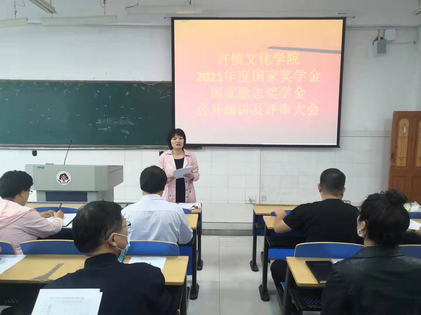 9月26日下午3点漯职院许慎文化学院在3205教室举行了2021年度国家奖学金及国家励志奖学金的现场评审大会。学院领导班子成员、各教研室主任、专业负责人、全体辅导员、学管员、教务员等36名教师共同担任评委,并邀请学生处智水立老师莅临现场指导此项工作。