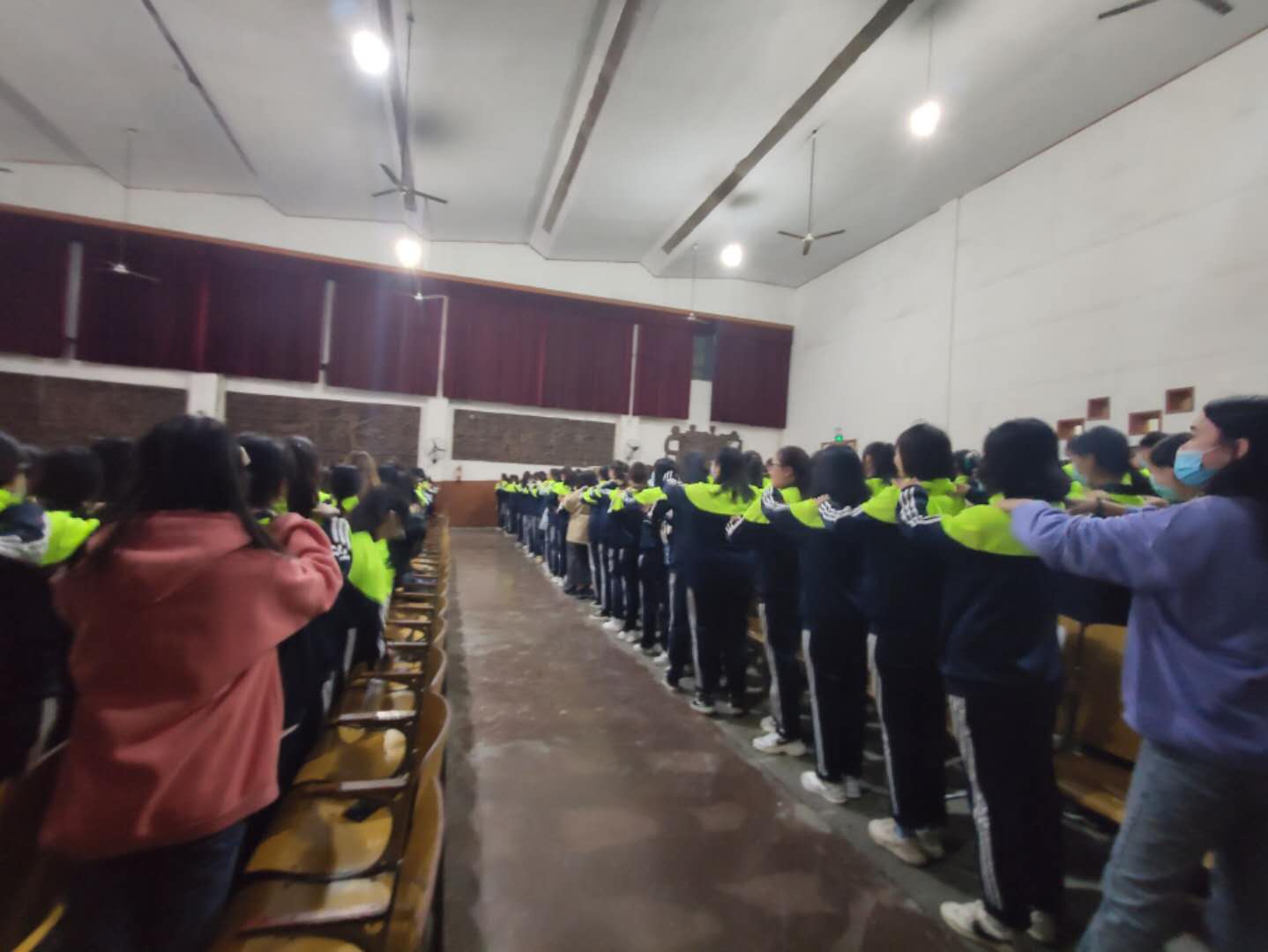 讲座在愉悦轻松的气氛中开始,首先,付老师带领全体师生一起做心理放松操,缓解了新生军训一天的疲惫,拉近同学们之间的关系,使同学的身体和精神得到充分的放松。