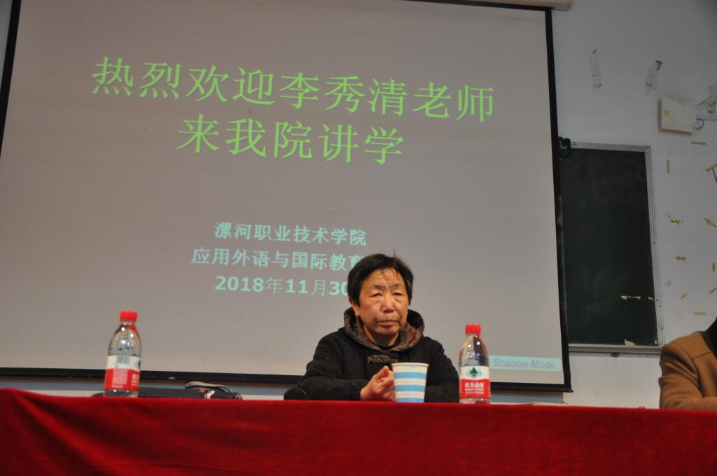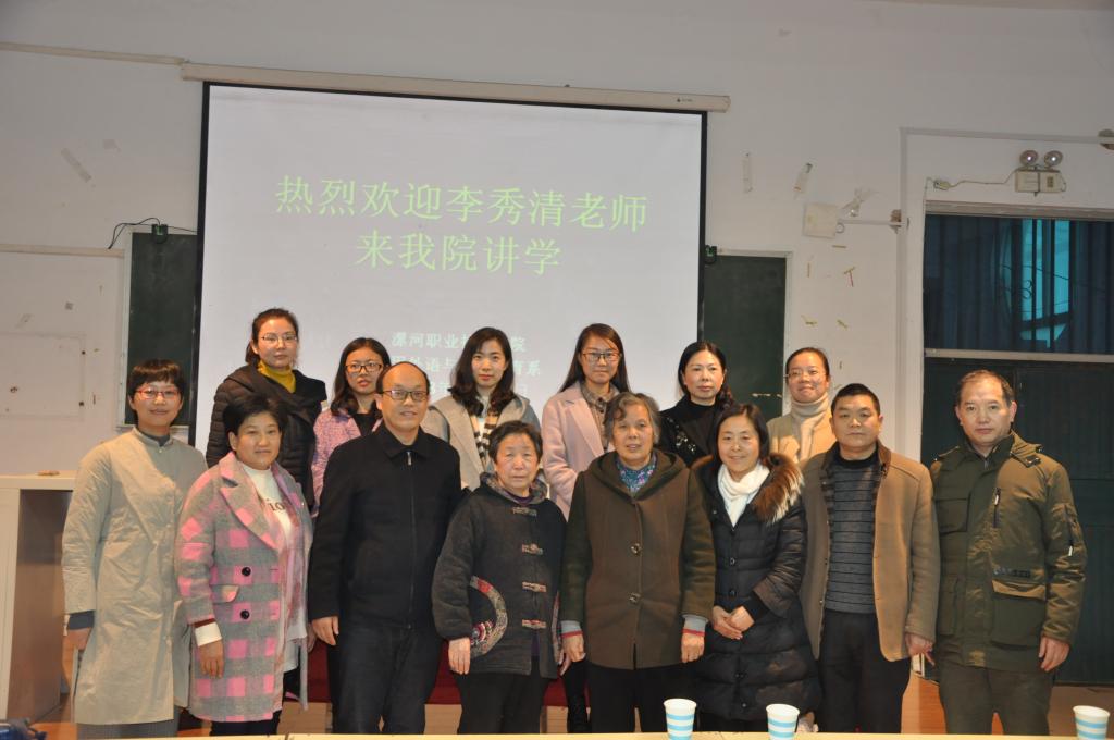 11月30日下午,漯河市许慎文化推广志愿者服务团团长李秀清老师应邀在学院三号教学楼3703多媒体教室举办以“学习许慎文化,弘扬许慎精神”为主题的学术讲座。应用外语与国际教育系张彦鸽主任、党总支寇槐花书记等系全体领导班子成员、语文教育教研室全体老师、2017、2018级语文教育专业辅导员老师和近300名学生共同聆听了此次讲座。讲座由应用外语与国际教育系副主任孟令超主持。漯河市郑东教育集团郭玉华校长、漯河市许慎文化推广志愿者服务团顾问、郾城区作协主席王云英老师等参加讲座。
