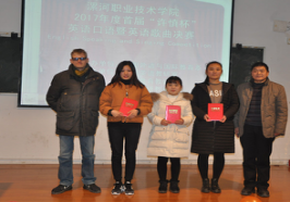 此次比赛包含公共英语演讲赛、英语歌曲比赛、专业英语演讲赛三项内容。参赛选手来自全院各个系部,经过初赛选拔,共有15名选手参加了公共英语决赛,10名选手参加了专业英语演讲赛,10名选手参加了公共英语歌曲演唱赛。为保证比赛的公平,评委分别来自公共英语教研室和专业英语教研室。经过前期选手们的积极准备和老师的认真指导,选手们在决赛中赛出了水平,赛出了风格,让评委们和现场观众眼前一亮,现场气氛活跃,比赛氛围浓厚。经过激烈角逐,共有35名同学荣获一、二、三等奖。决赛结束后,商务英语教研室主任李晓磊、外籍教师Beny分别对决赛选手的表现进行了点评,对同学们的表现表示了肯定和鼓励;系教学副主任孟令超对大赛中选手的优秀表现和大赛周密的组织进行了高度评价。系领导、评委、指导老师向获奖选手颁发荣誉证书,并与获奖选手亲切合影留念。
