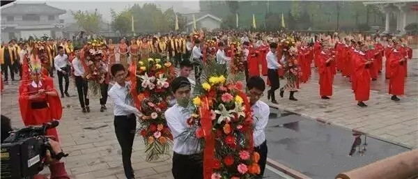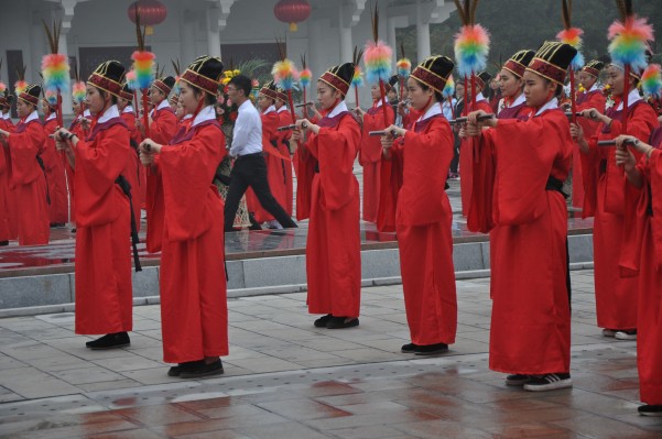 仪式由市人大常委会副主任杜广全主持。市政协主席张社魁、副主席田冠亭、河南省文字学会会长王蕴智及高校专家学者、中小学代表、许学爱好者和社会各界代表等参祭。我院党委书记王为民、院长顾文明、常务副院长吴玉堂、副院长王变奇参加了祭拜仪式。与会领导和嘉宾向文宗字祖许慎敬献花篮。而后,河南省文字学会会长、河南大学博士生王蕴智教授诵读祭文。古乐声起,我院音乐舞蹈系64名学生进行了八佾舞表演。全体人员面向字圣殿对字圣许慎三拜九躬。隆重的祭拜仪式表达了世人向字圣先师悼贤思哲、缅功追德的真挚敬意。