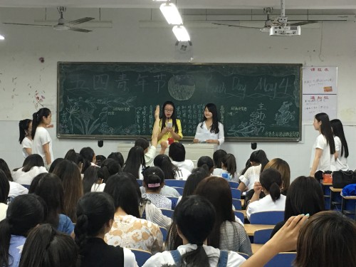 为继承和发扬“五四”精神,激励广大青年团员积极向上、乐观进取精神,应用外语与国际教育系各团支部于5月4日晚7:30分别在3202、3204、3312教室举办“拥抱五四 --扬帆起航”为主题五四青年节活动。系党总支书记田玉枝、学管主任吕红梅、团总支书记李晓静及辅导员樊春娥、李晓磊、朱婷婷等与同学们一起欢度节日。