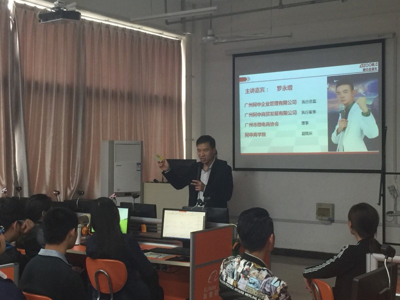 3月30日下午2:30,经漯河市郾城区商务局介绍,应用外语与国际教育系特邀广州阿中商学院常务副院长姚志强先生及广州阿中商贸发展有限公司执行董事罗永增先生在2号实训楼2611网络贸易实训室举办了一场校企跨境电商大学生创业创新项目实习指导讲座。本次实习指导讲座,旨在鼓励我系商务英语专业(跨境电子商务方向)学生大胆创业,激发学生创业创新潜质,为学生提供经验交流、资源共享的学习机会。应用外语与国际教育系主任张彦鸽、副主任孟令超、商务英语教研室全体教师及我系2015级商务英语专业(跨境电子商务方向)全体学生参加本次讲座。