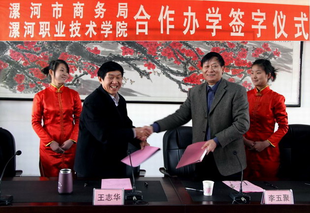 商务局局长王志华职业技术学院院长李五聚签订联合办学协议