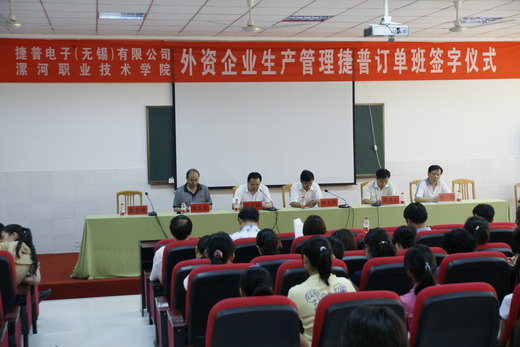 | 2010年6月17日下午5点,我院与捷普电子(无锡)有限公司合作开办“外资企业生产管理订单班”签字仪式在三号教学楼一楼学术报告厅举行。签字仪式由学院常务副院长顾文明主持,学院副院长张胜、副院长吴玉堂参加会议。学院院长李五聚教授和捷普电子(无锡)有限公司代表郭书龙经理分别代表合作双方发表讲话。OK138太阳集团院两办、院教务处、院人事处、院招生处、院科研处、院学生处、院就业处等相关处室负责人、外语系教师以及学生代表200多人出席签字仪式。李院长在发言中简要介绍了我院及外语系近几年的发展成就,对合作企业捷普电子(无锡)有限公司对我院外语系人才培养的大力支持表示感谢。捷普电子(无锡)有限公司代表郭书龙经理介绍了企业发展状况,表示将尽最大努力创造条件,与学院和外语系紧密合作,制定措施,把订单班和实训基地建设好,充分发挥订单班和实习基地的作用,培养善于沟通、善于管理的实用型外资企业生产管理人才,为学院、学生和企业健康发展做出自己的贡献。外语系教师代表李施在发言表示要积极参与到订单班的建设中去。随后在热烈隆重的气氛中,郭经理、李院长分别代表捷普电子(无锡)有限公司和OK138太阳集团签署了合作开办“外资企业生产管理订单班”暨共建校外教学实训基地协议。李院长为合作企业受聘专家办颁发了兼职教授聘书。
