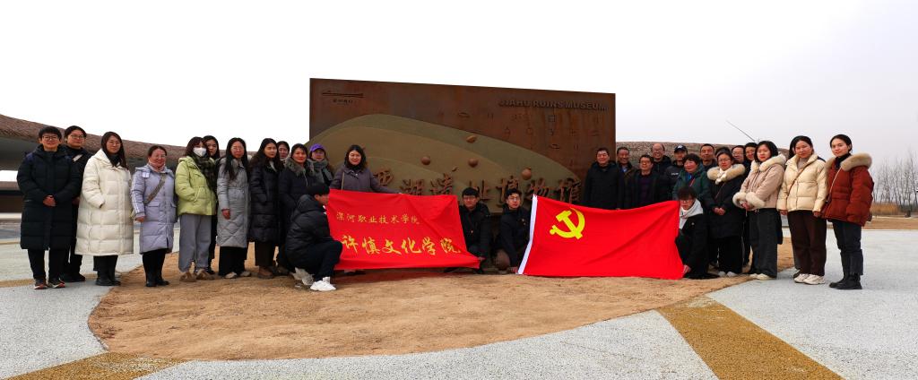 下午,结合学院专业建设和课程改革,许慎文化学院党总支组织全体党员一行人来到贾湖遗址博物馆参观学习。馆内,大家认真听着讲解员精彩生动的解说。生动的图片、珍贵的实物、栩栩如生的雕像,让大家身临其境般体验了一场跨越千年的时空之旅。弘扬中华优秀传统文化是增强文化自信的基石。贾湖文化是中华民族历史长河中具有确定时期记载的重要文化遗存,是早期中国人走向文明的重要标志。贾湖之行让参加活动的党员更进一步地感受到中华优秀传统文化的魅力,更加坚定文化自信。