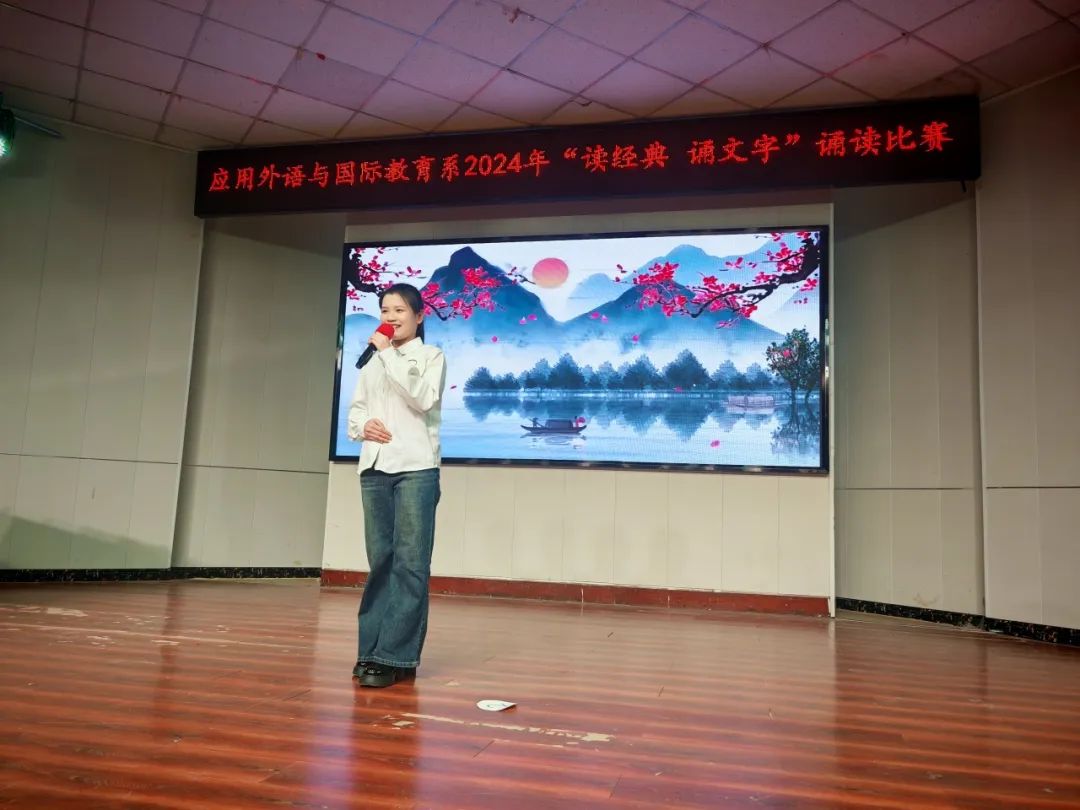 12月12日晚,应用外语与国际教育系在学校音乐系小礼堂隆重举办了“读经典 诵文字”诵读比赛决赛。此次活动旨在通过诵读经典,激发学生对文学的兴趣,提高语言运用能力,加深对中华优秀传统文化的理解和认同。应用外语与国际教育系副主任孟令超、党总支副书记吕红梅、团总支书记袁海伟出席了本次活动,2024级全体同学及2023级学生代表现场观赛。大赛邀请了语文教育教研室的宋琦、王智丹、梁仲瑜、赵鑫彦、李镕岐等五位老师担任评委。