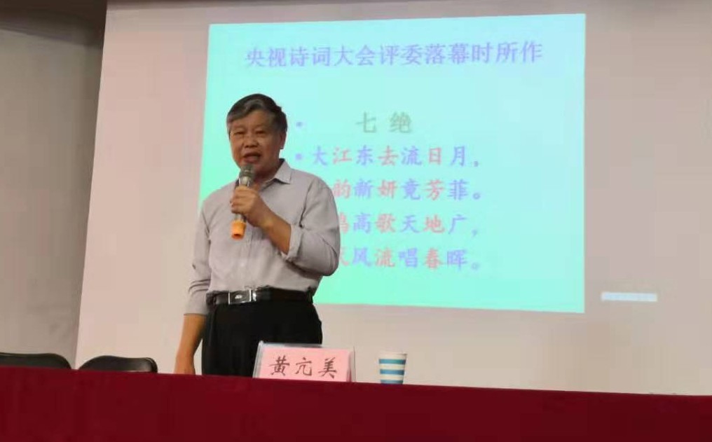 黄教授在此次系列活动中多次指出,中华优秀传统文化是中华民族的精神命脉,诗歌作为中华传统文化中重要的组成部分,近年来越来越受重视,许慎文化学院的同学们应该注重自身诗歌知识的积累,从格律诗的欣赏和写作做起,传承中华优秀传统文化。许慎文化学院的教师们应该将教学改革、科研方向与许慎文化结合起来,与中华传统文化结合起来,担负起弘扬中华优秀传统文化的重任。