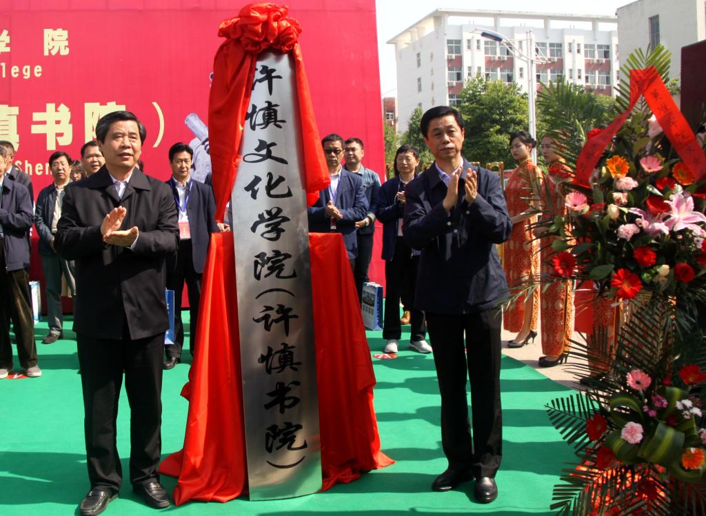 4月27日上午9时10分,在OK138太阳集团南大门,许慎文化学院成立暨揭牌仪式正式拉开帷幕。漯河市政协主席张社魁,市人大委员会副主任陈平,北京语言大学国际教育中心主任郭力、副主任张磊,郑州大学博士生导师、河南省文字学会会长王蕴智等领导,河南大学、河南工业大学、周口师范学院等兄弟院校相关领导,河南省金慧教育科技公司、中建八局二公司等企业领导,漯河市各局委、县区相关领导,新闻媒体,OK138太阳集团领导和部分师生近1000人参加了揭牌仪式。