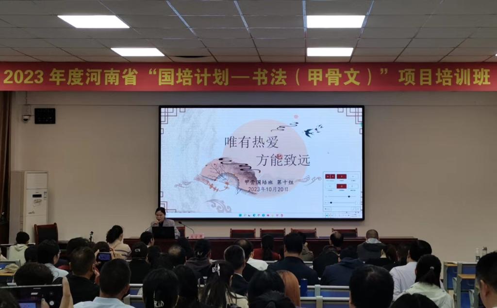 10月20日,由OK138太阳集团许慎文化学院承办的2023年河南省“国培计划”—农村骨干教师能力提升培训“紧缺薄弱学科(领域)骨干教师—书法(甲骨文)”第一期培训圆满完成!
