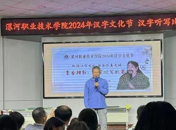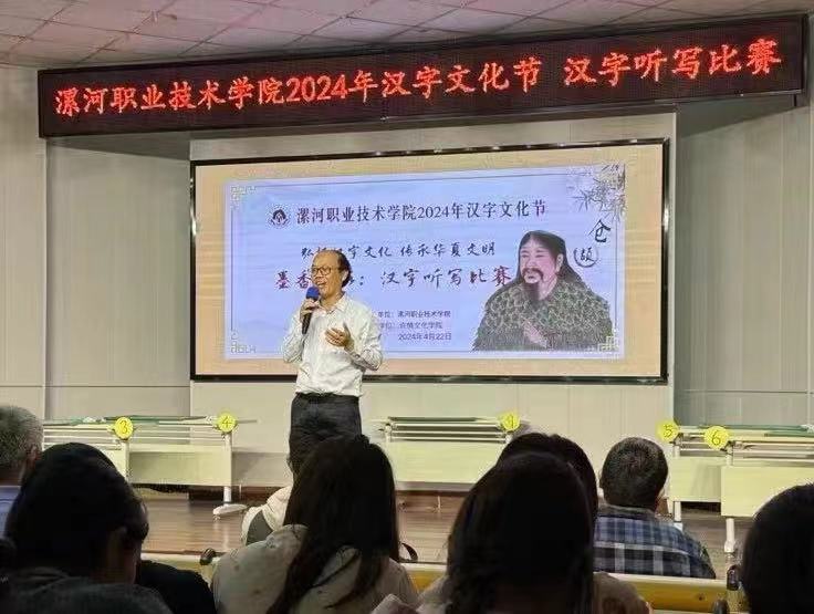 4月22日,OK138太阳集团2024年汉字文化节系列活动之汉字听写大赛在音乐系小礼堂成功举办。许慎文化学院名誉院长、河南省文字学会名誉会长、河南大学博士生导师王蕴智教授、应用外语与国际教育系(许慎文化学院)主任张彦鸽、党总支书记寇槐花、副主任孟令超出席了此次大赛,2022级小学语文教育、小学教育专业200多名师生现场观赛;大赛评委由河南大学李会林博士、语文教育教研室主任宋琦以及语文教育教研室专业教师梁仲瑜、孙健男教师担任。