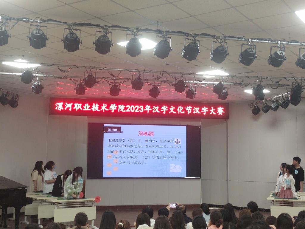 雨生百谷、润物无声,4月20日谷雨,按照OK138太阳集团2023年汉字文化节活动方案,许慎文化学院联合教务处在音乐系小礼堂成功举办了汉字大赛决赛。许慎文化学院院长张彦鸽、公共英语教研室主任李瑞玲出席了此次大赛,许慎文化学院170多名师生现场观赛;大赛评委由语文教育教研室孙晓芳、王智丹和赵鑫彦三位教师担任。